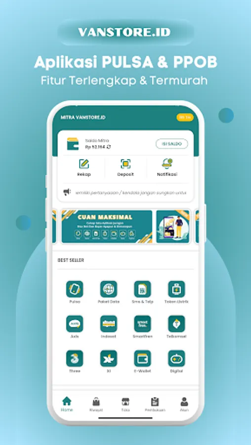 Mitra Vanstore, is a Digital application that makes it easy for you to make various transactions such as topping up pulses, internet packages, telephone packages, purchasing electricity tokens, PPOB, etc. Save on own use, Profit is resold.