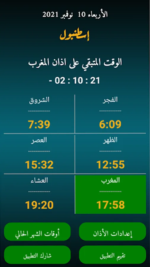 Azan times Turkey without the net is what this application offers. From now on, using this application, you will be aware of the prayer times in Turkey. This application does not calculate the prayer times for Turkey through your site and all the complications associated with it, but rather it takes the pre-calculated Turkey prayer times, and in other words the timings in a quick way. We have taken turkey azan times from reliable site. In addition, this application does not need the Internet to show the prayer times in Turkey. And for this purpose, this program is designed so that the Muslim user can get the accurate Turkey azan times.