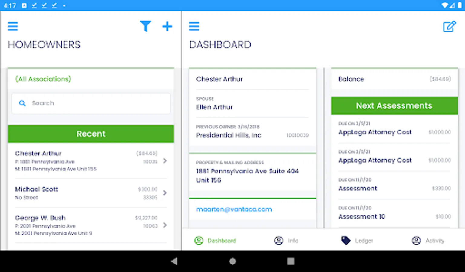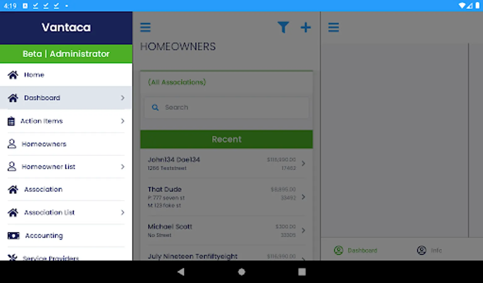 The Vantaca Mobile App is optimized to run on your Android phone and is specifically designed to provide existing Vantaca customers quick and secure access to your data from anywhere. We offer a smarter solution that integrates all of your data, analyzes it, and reports it in an easy-to-use format so that you can always be a step ahead. Vantaca empowers your management company with the tools you need to deliver superior service to your clients.