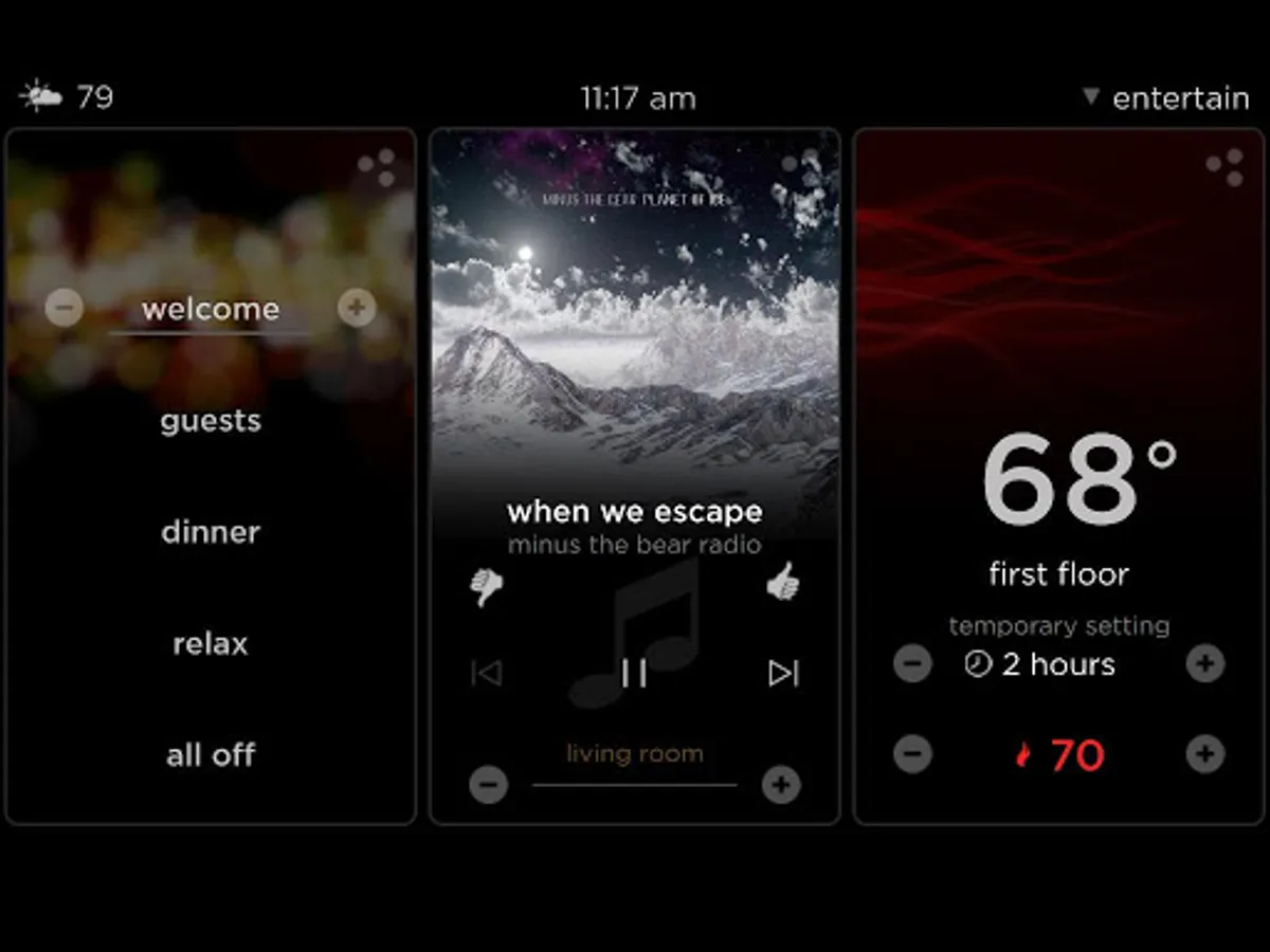 The Equinox app and accompanying in-wall touchscreens epitomize the ideal user experience by providing a remarkably simple interface for managing luxury environments. With three navigation levels - the live dashboard, full-screen view and edit mode, Equinox can dynamically personalize each phone or tablet for any person, area, function or time.