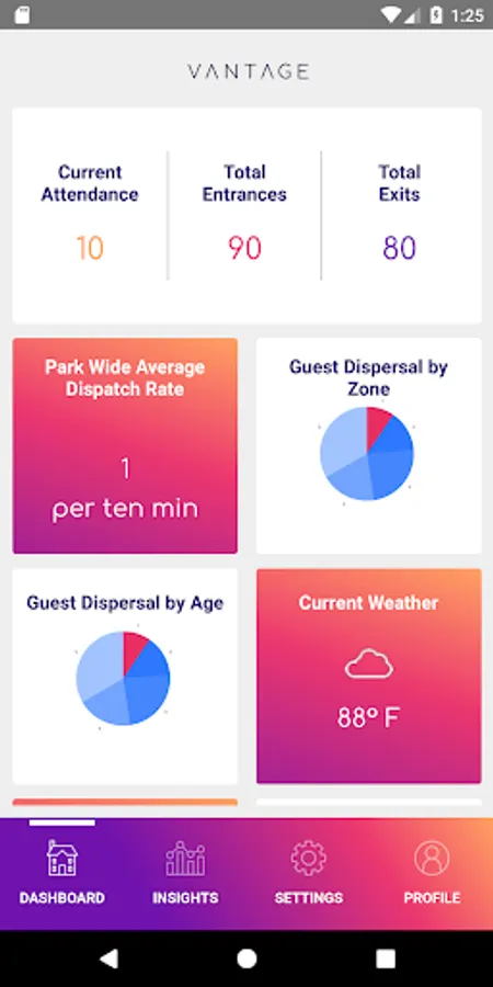 This application allows entertainment and hospitality staff to easily view metrics relating to the real-time status of their venue in order to maximize efficiency, safety and guest experience. Available metrics include (but are not limited to) wait times, current weather data and guest dispersal. This app will work in seamless conjunction with a centralized web application portal customized for venue management, as well as a guest-facing mobile application.
