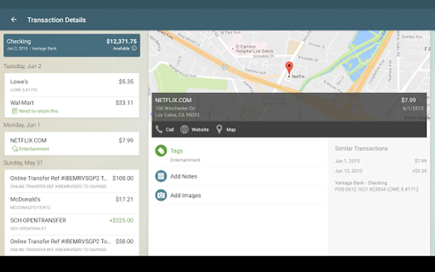 Add Tags, Notes, Images & Geo-Information: By enhancing transactions with custom tags, notes or photos of a receipt or check, you have the ability to stay organized and find exactly what you’re looking for when searching through your finances.
