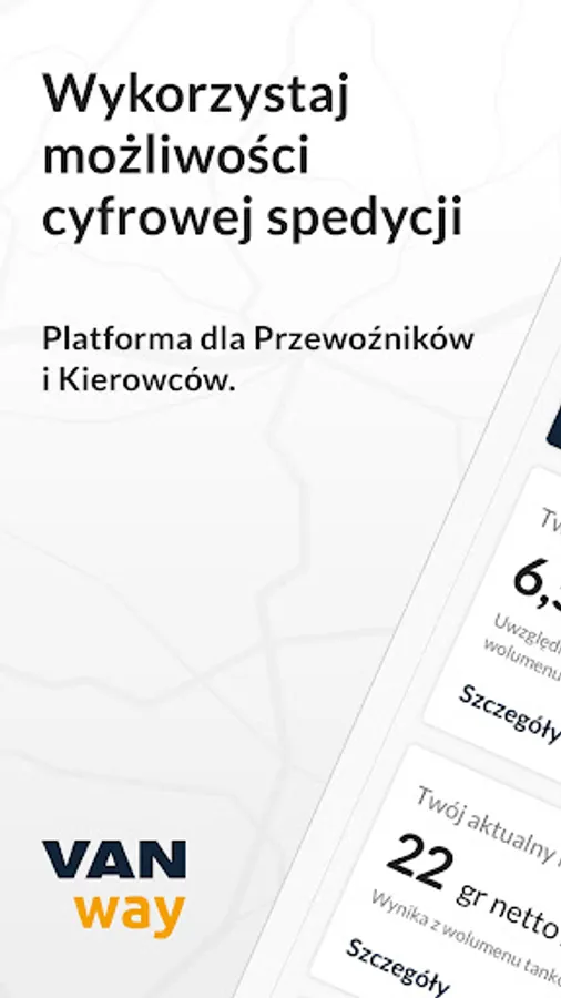 Access to the VAN way platform is currently available to active VAN group carriers and drivers (VAN cargo, Podlasie and Courier).