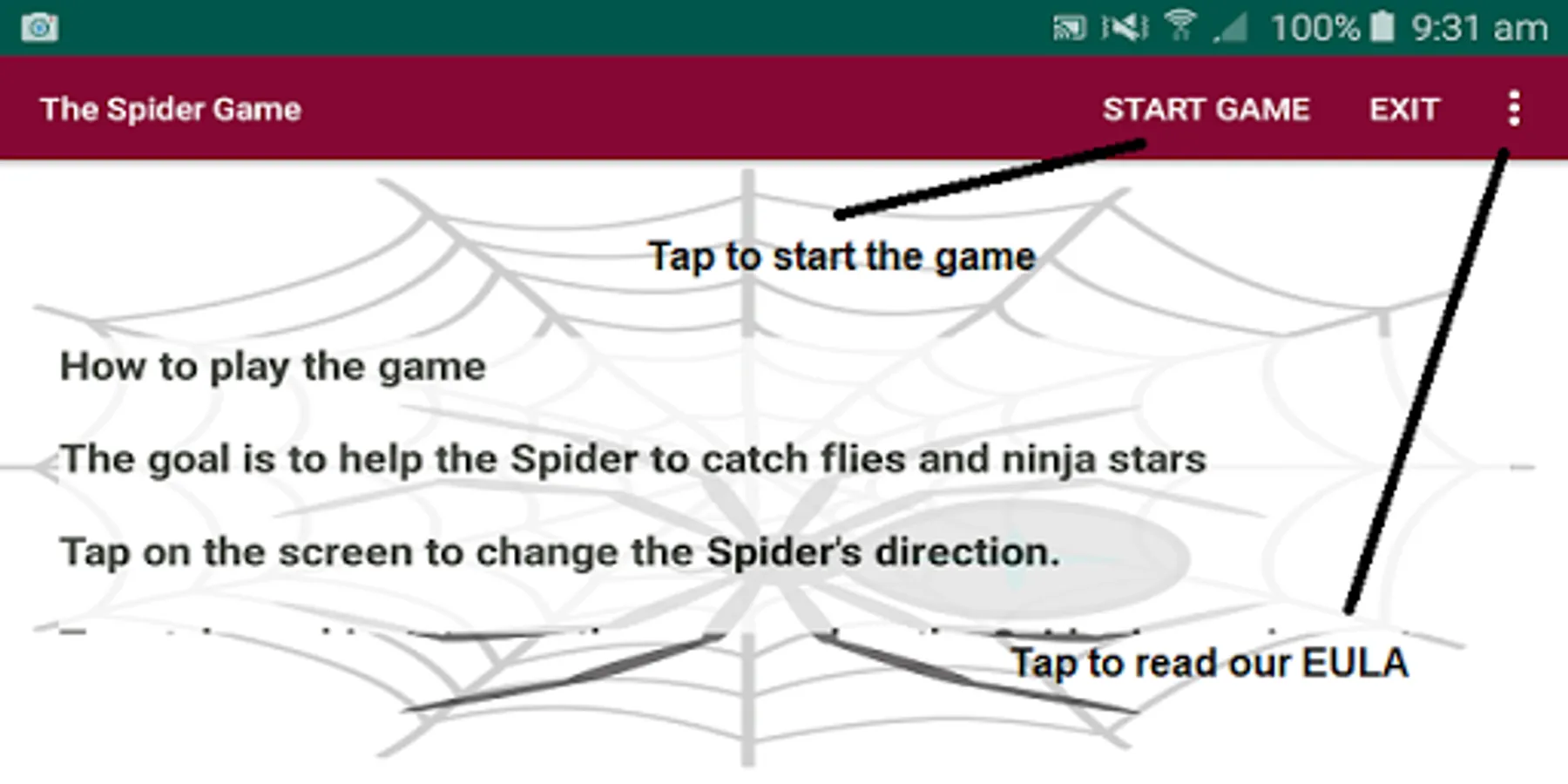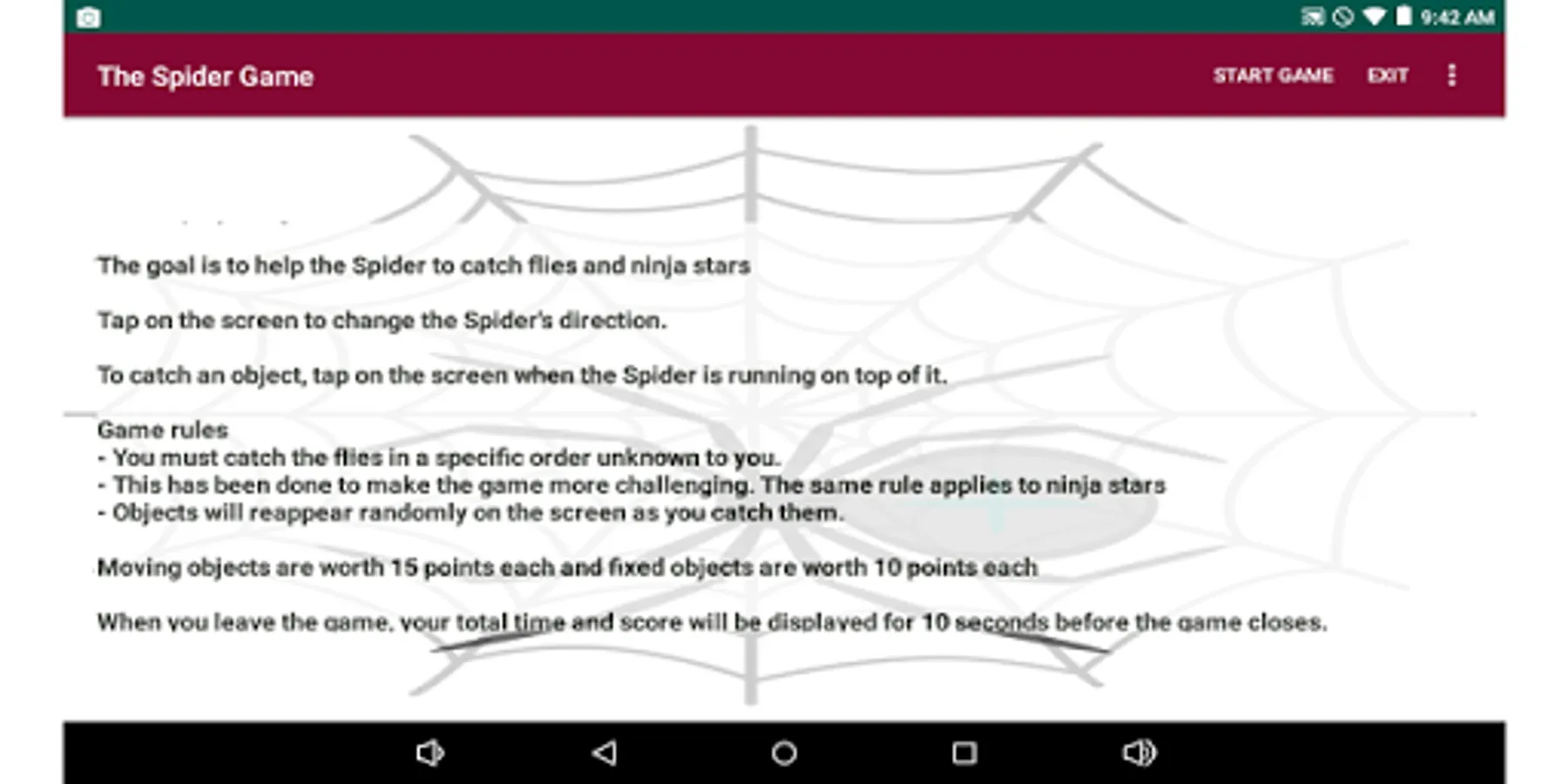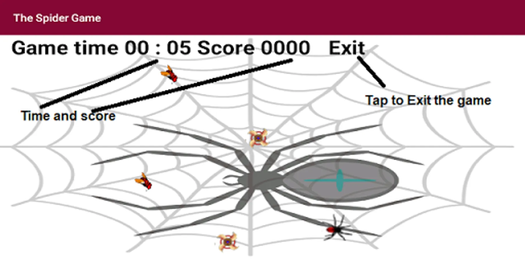 Touch the screen to change the Spider's direction and to catch a fly or ninja star.