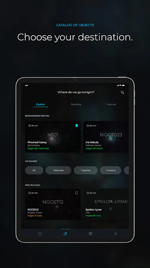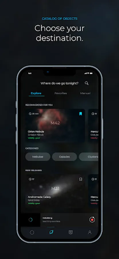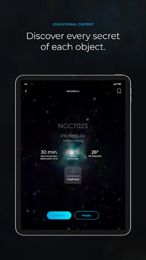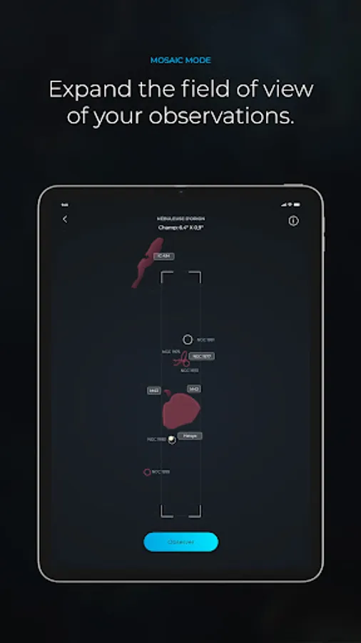This intuitive mobile application allows you to explore the Cosmos with ease. Receive personalized recommendations on which objects to observe according to your geolocation and the astronomical calendar. Learn more about the history of the Universe and immortalize your trip by photographing galaxies, nebulae and star clusters.