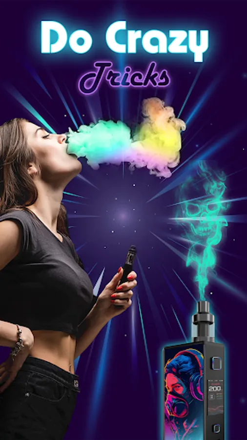 Enjoy the virtual vaping world. Pressing the vape smoke button, you will see fake smoke clouds on your screen. This is an amazing vape tool to enjoy the vape smoke virtual