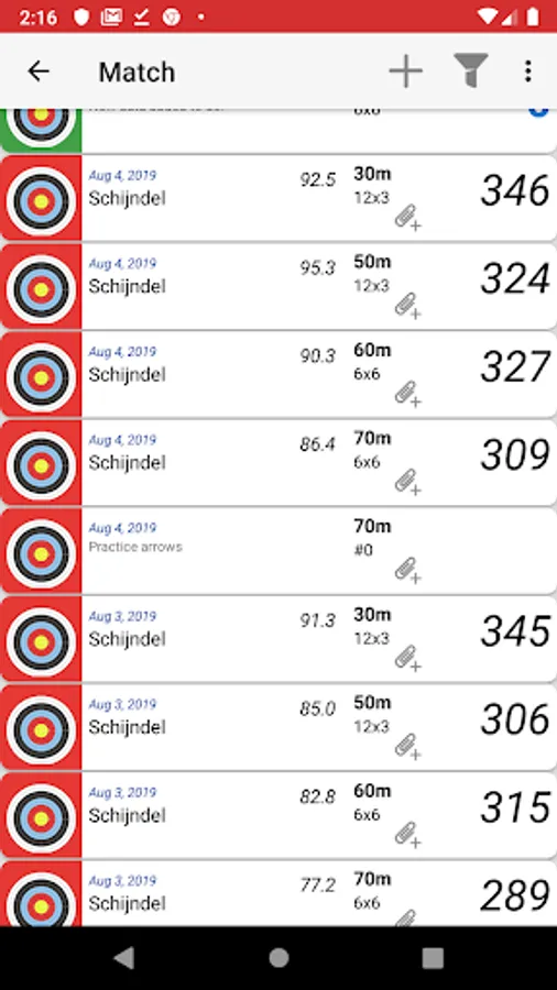 With Artemis you can record your score and your arrows, record any information and analyse it afterwards. Archery is a game of statistics, and this app can help you with the statistical analysis to become a better archer.
