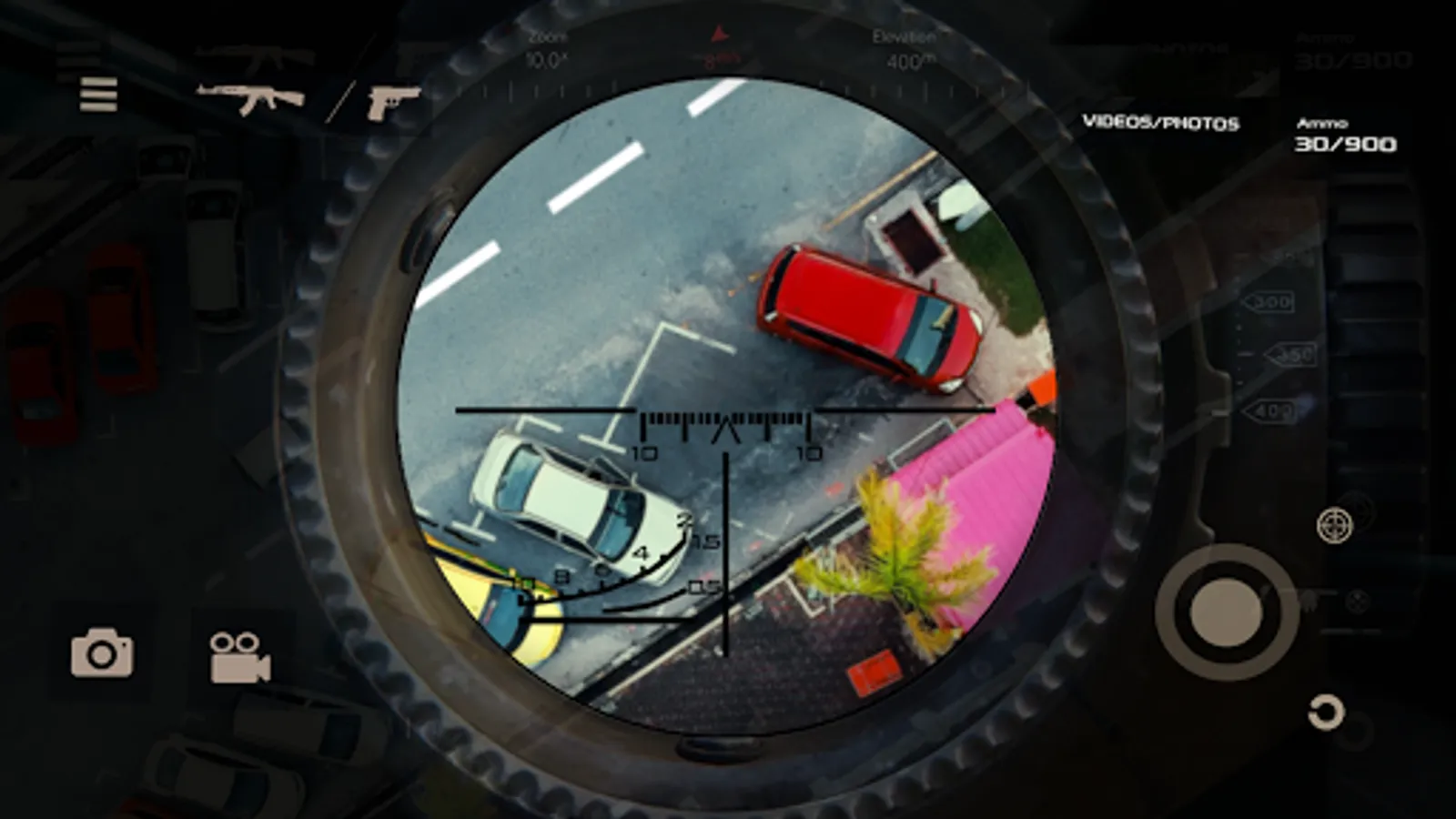 - Zoom Mode - simulates real sniper scope and zoom + you can do shooting and photos