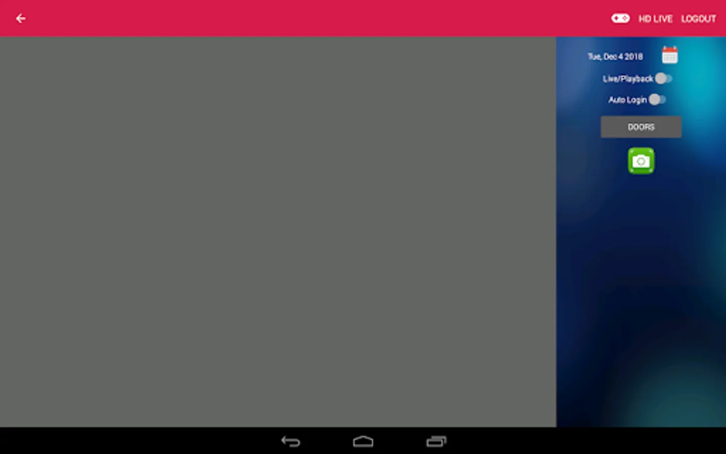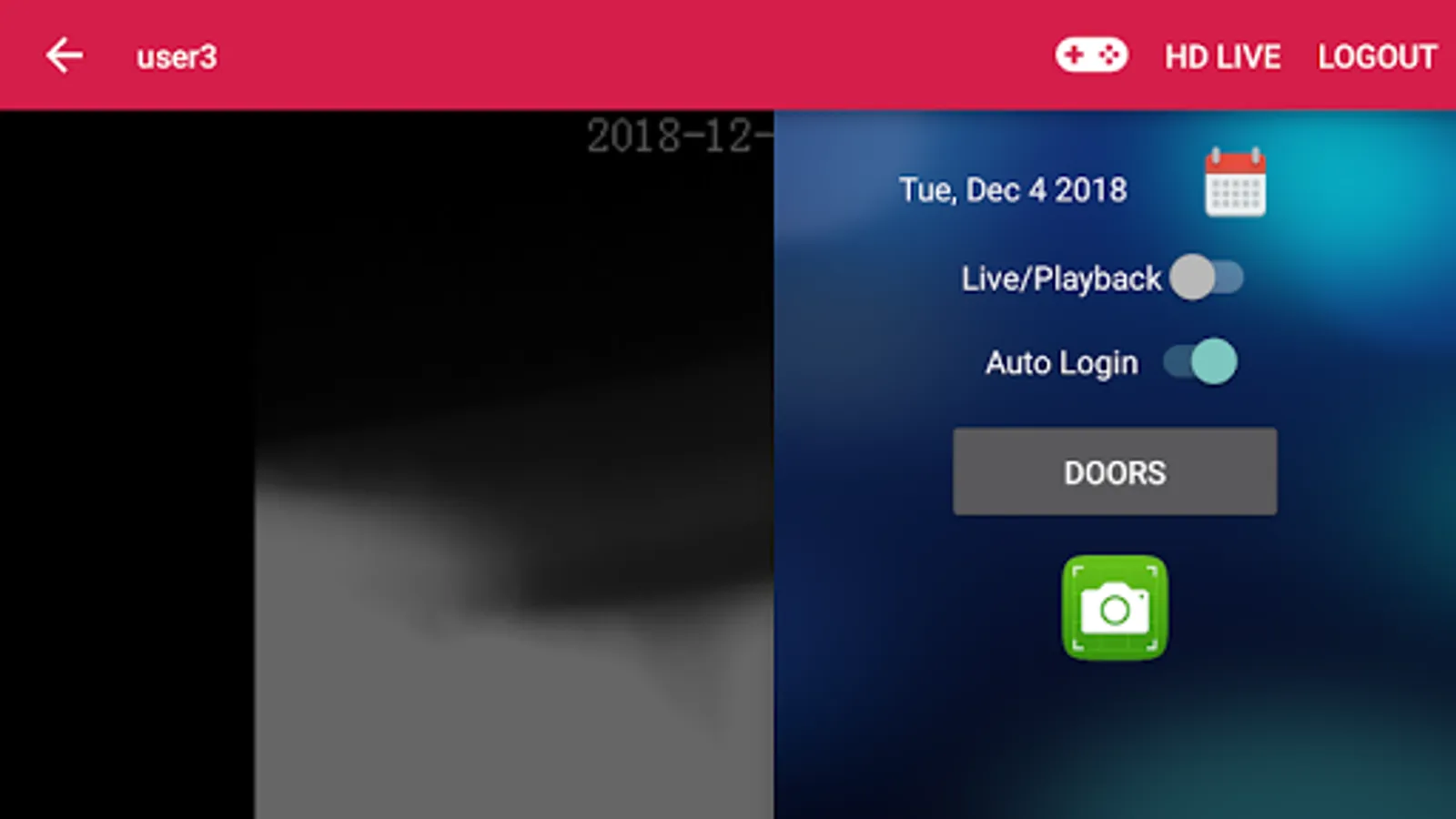 4. Playback {Switch between live and playback with a tab located at top right}