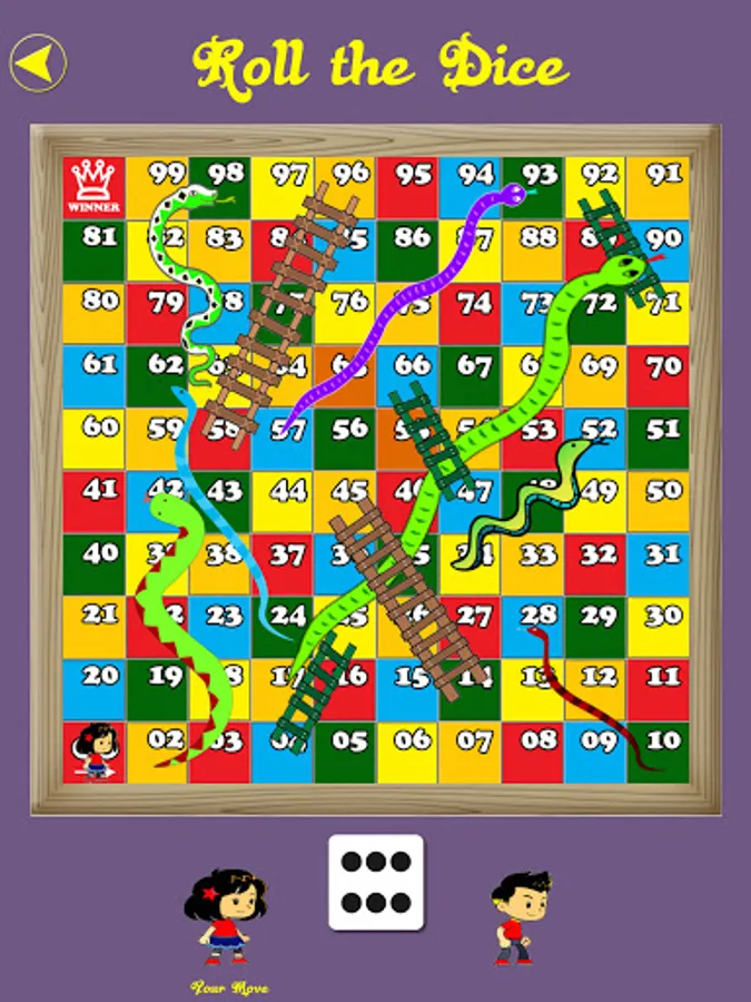 Snakes and Ladders is an ancient Indian board game, you play it with single player and multiplayer(two, three or four players). Who is ready to roll the digital dice??