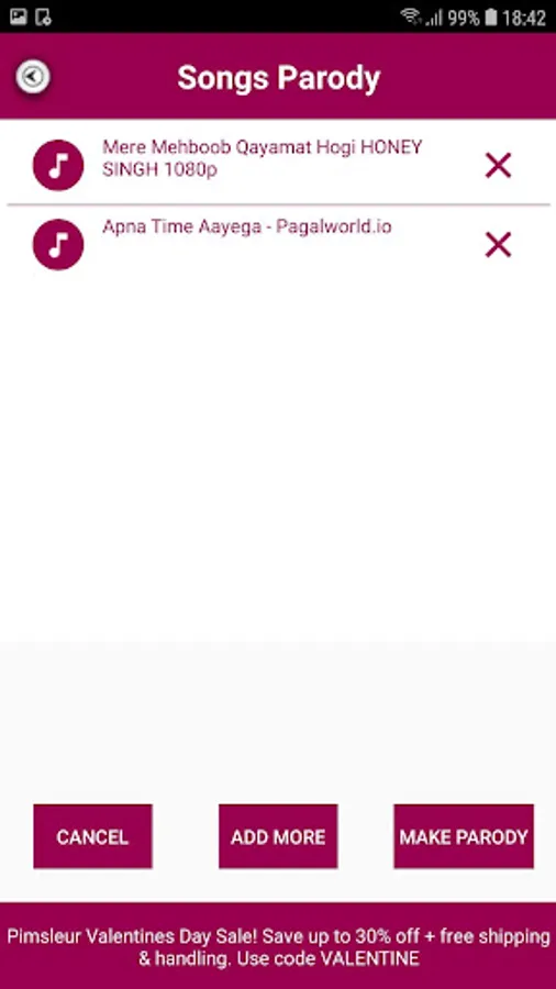 Finally you can make a Song Parody by merging all songs and save it to your device for future use. Its a simple and easy to use app.