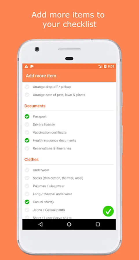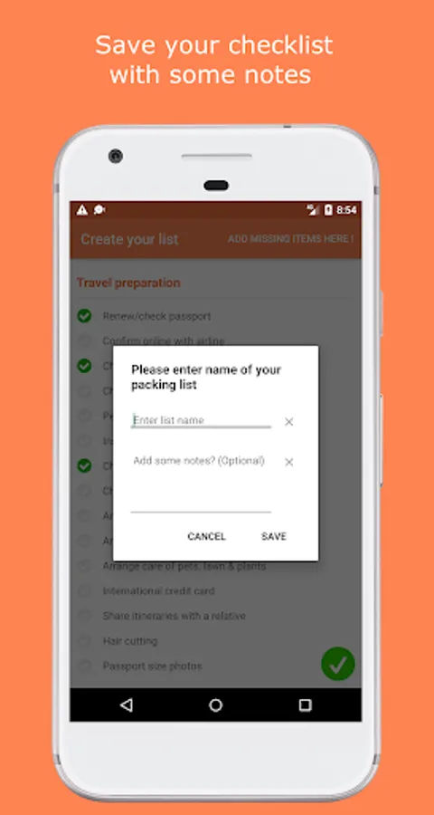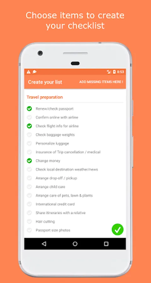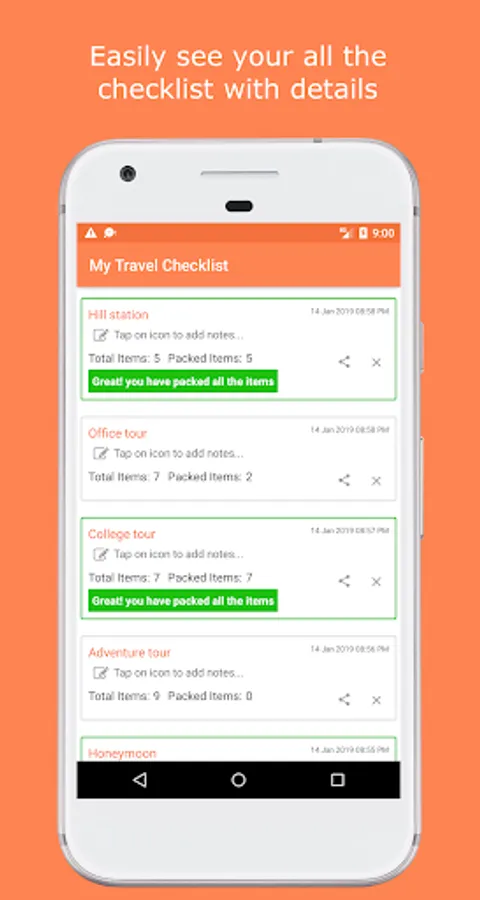 Travel Check list is Todo list that lets you to create / manage your packing item that you want to carry with you on Travelling.