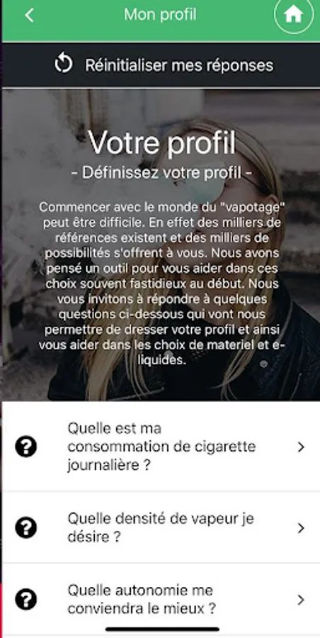 The VapSED app is an application for professional partners. It helps guide your customers on the best choices in terms of materials and e-liquids.