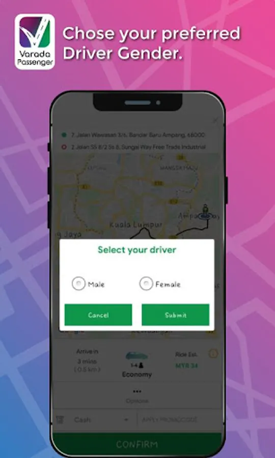Gender Matching Option: A female rider can choose a female driver when in doubt of safety!