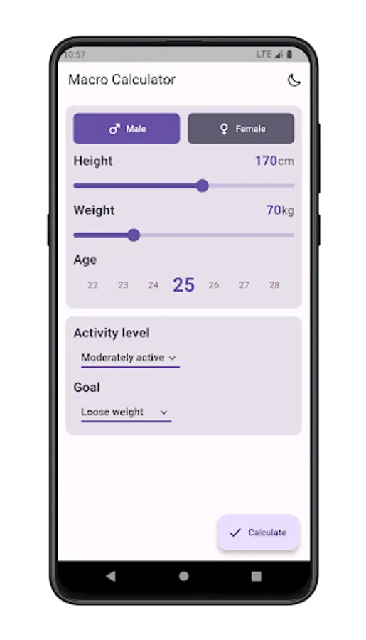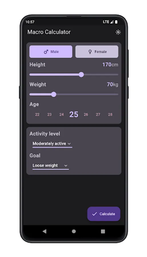 Macro Calculator is a simple application that calculates your optimal macronutrients and calories based on your age, height, weight, gender, and activity level.