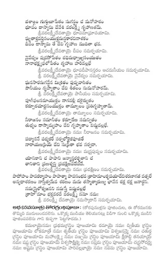 • Varalakshmi Vratha Manthramulu Slokamulu