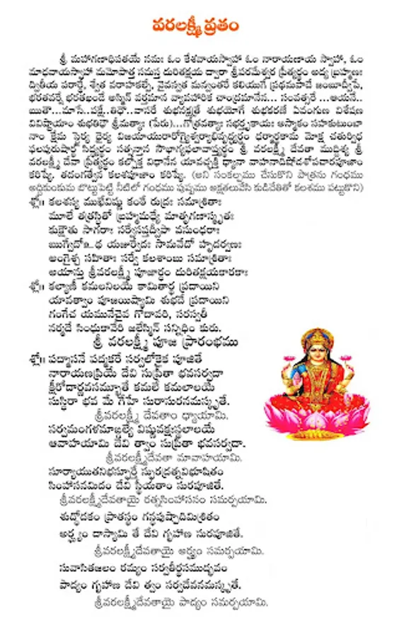 Telugu Varalakshmi Vratha Vidhanam And Pooja Vidhanam.