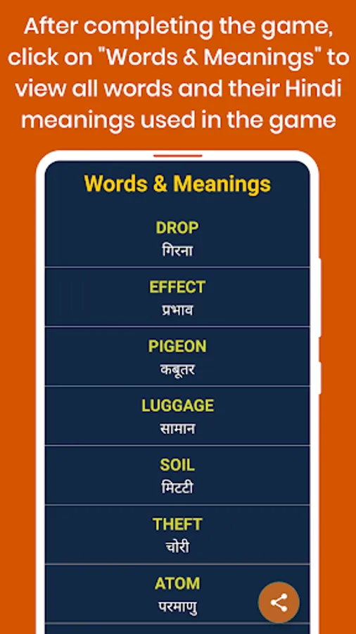 8) Share the "Words & Meanings" used in the game on social platforms.