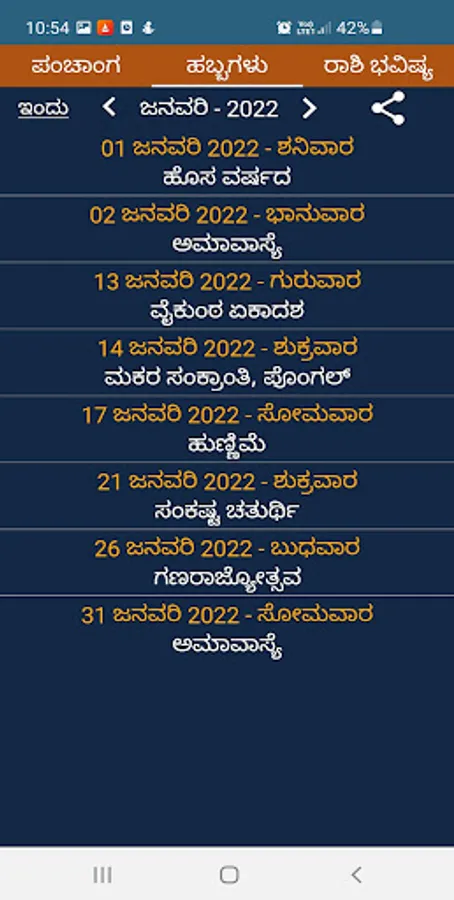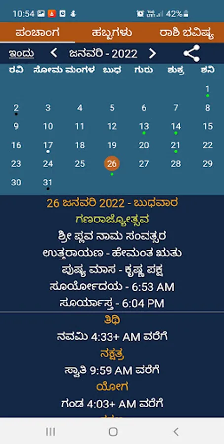Simple and Popular calendar app with Panchanga and Rashi Bhavishya details for all the Kannada speaking people and Kannadigas around the world.