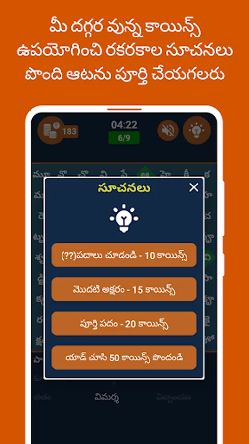 This Telugu game is very useful for people who are interested to improve their vocabulary by learning new words and their meanings.