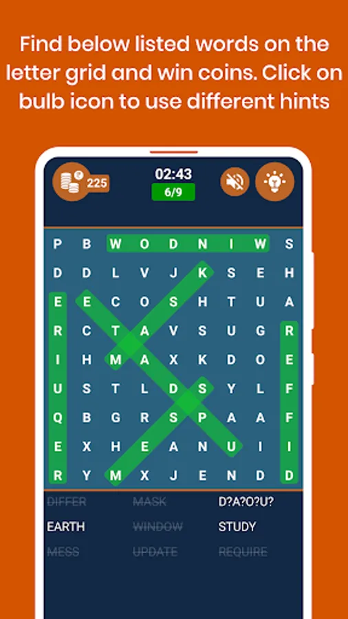 3) Earn coins for each word found and earn extra coins when you take a timer challenge.