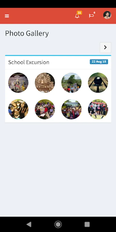 5. Photo Gallery. View/Download/Share high resolution pics shared by class teacher/School administration.