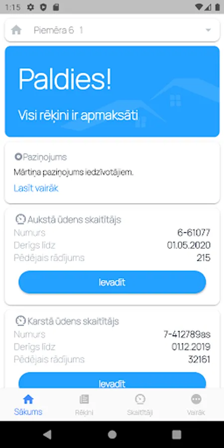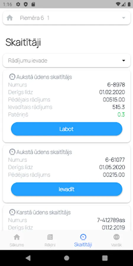 * NODOT RĀDĪJUMUS – ērts veids, kā nodot savus ūdens un citu skaitītāju rādījumus;