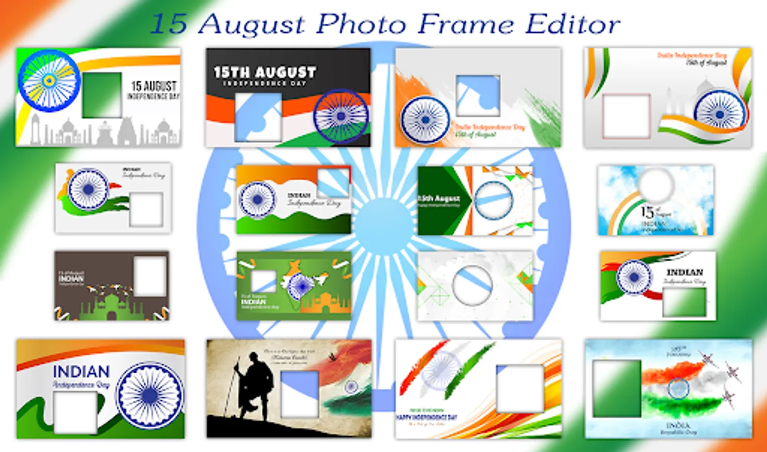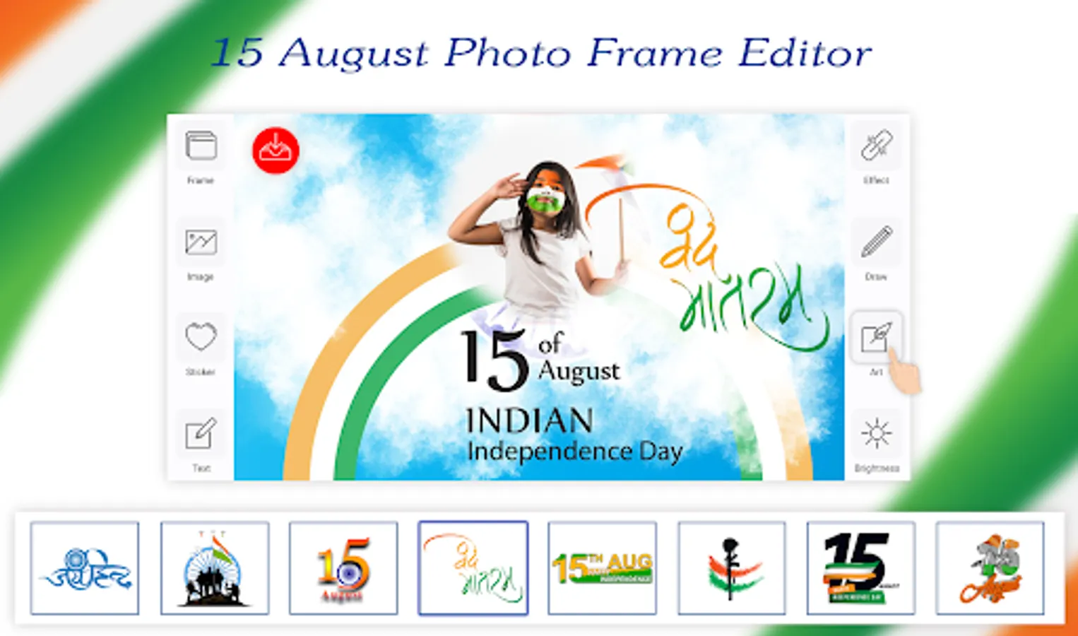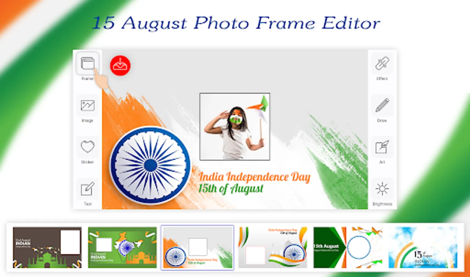 Try our best Independence Day Photo Editor which is called 15 August Photo Editor also for free and decorate your images with the most beautiful and 15 August photo frame. Now you can express your feelings for nation (INDIA).