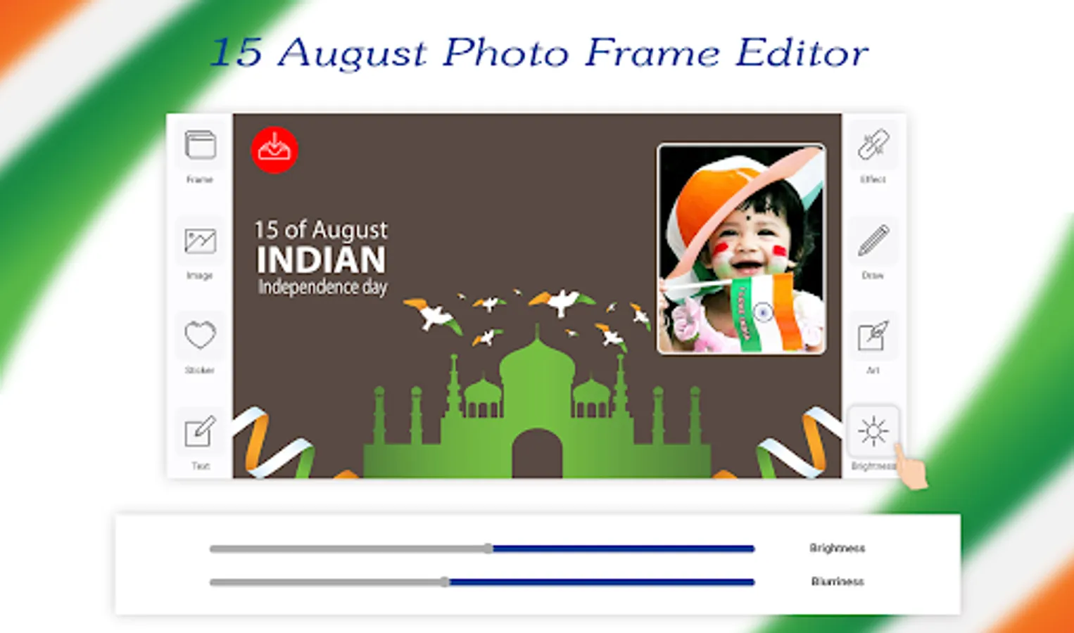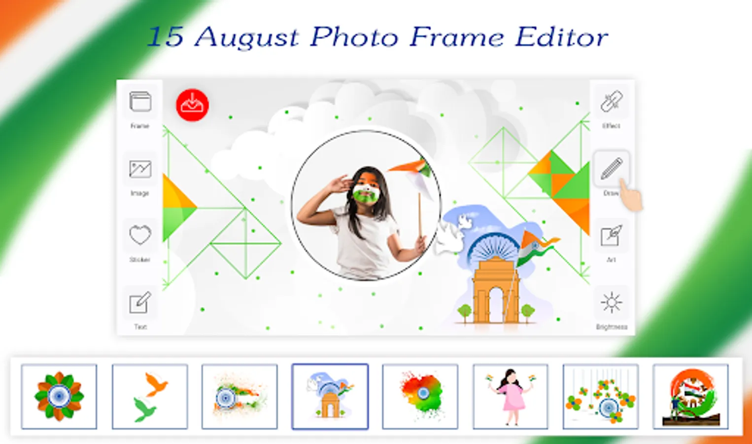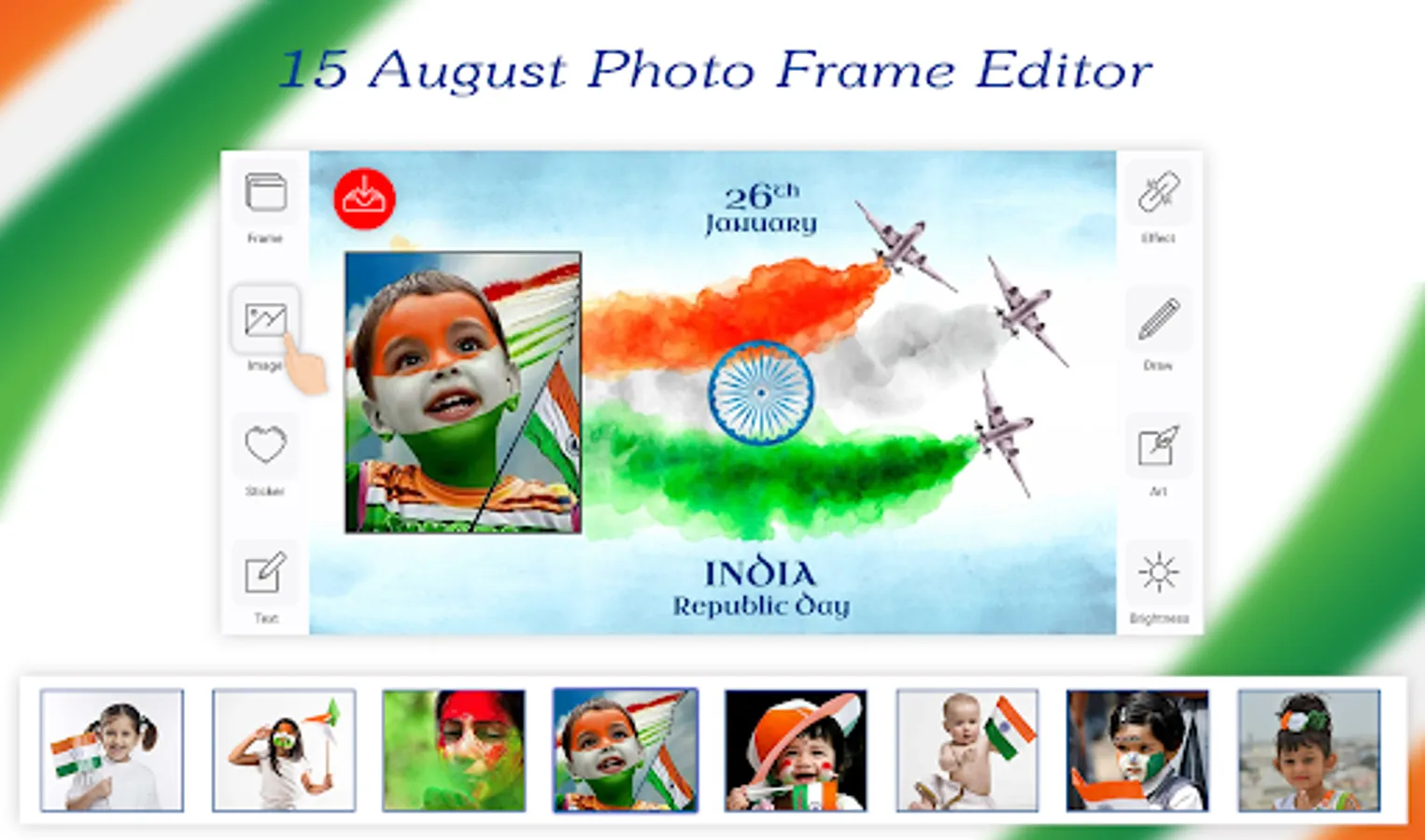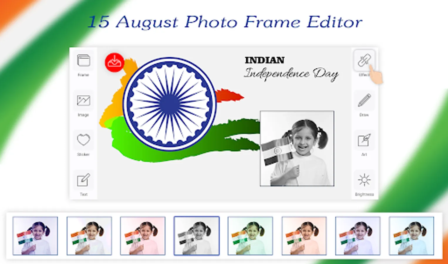 Try our best Independence Day Photo Editor which is called 15 August Photo Editor also for free and decorate your images with the most beautiful and 15 August photo frame. Now you can express your feelings for nation (INDIA).