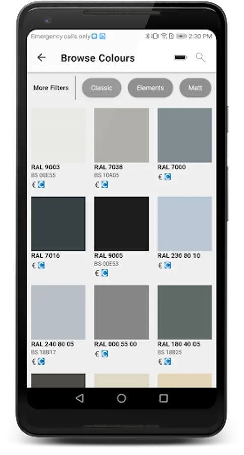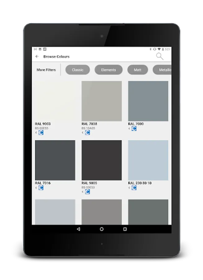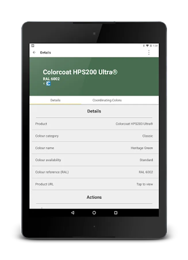 The standard app displays the standard colour range of both Colorcoat HPS200 Ultra® and Colorcoat Prisma®.