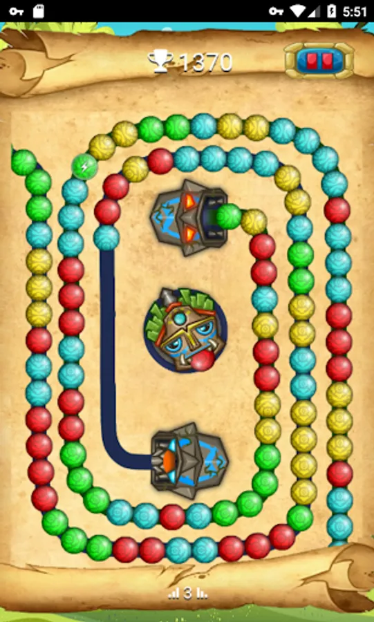 2. Match 3 or more of the same marbles to eliminate them. Destroy all the marble lines in the chain before it reaches the end.