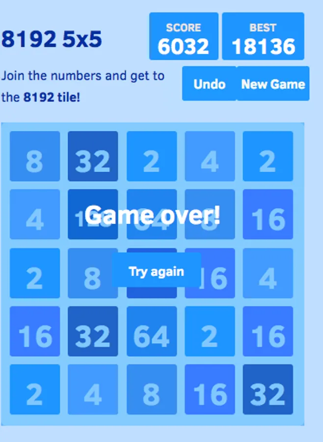 Move the numbers by adding the ones of equal value until you get 8192 Tile .