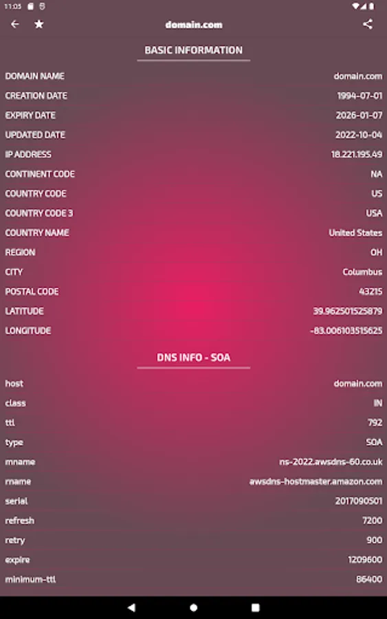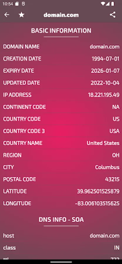 - Latitude and Longitude of the location of the IP address of the domain name