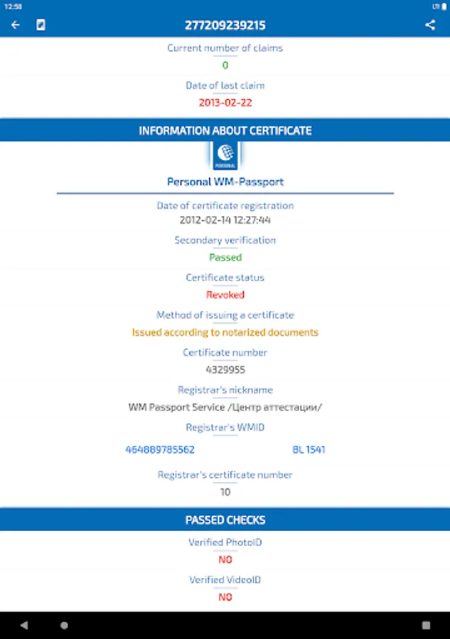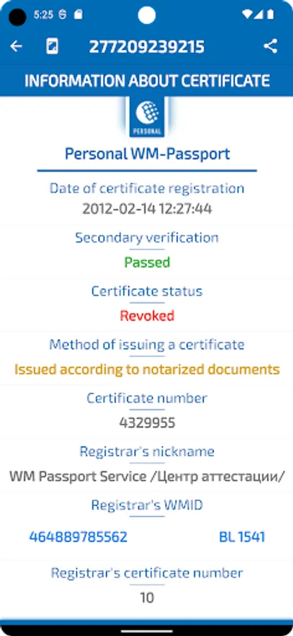 - Checking the status in the WebMoney system by WMID