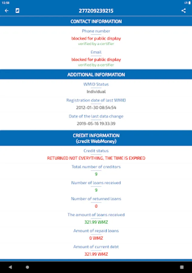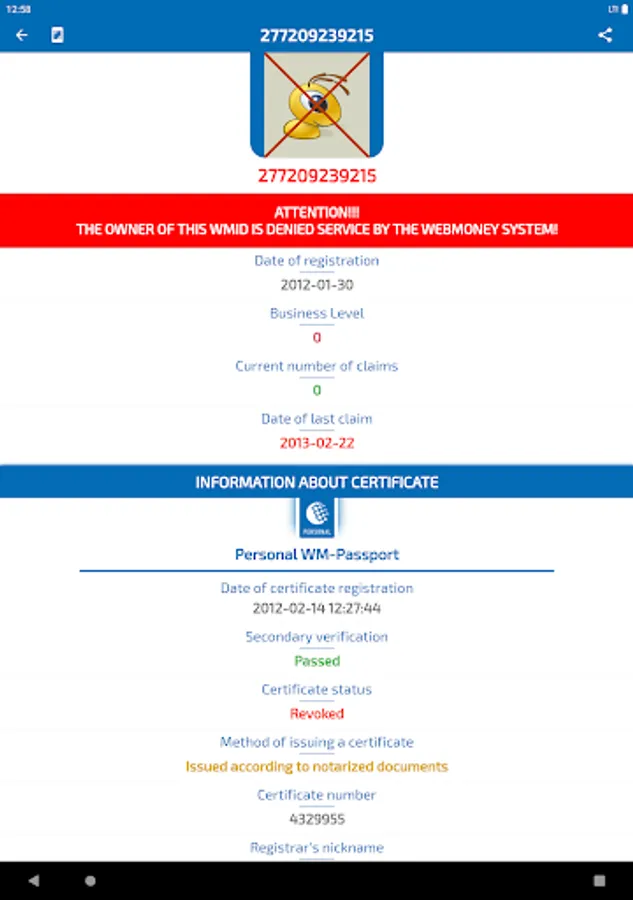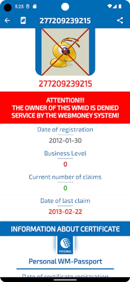 Our application will help you quickly get public information about the necessary member of the WebMoney system by its WMID (identification number in the WebMoney system). We recommend checking the user before each upcoming transaction. By taking just a few minutes to check, you can avoid unwanted consequences due to the actions of unscrupulous users.