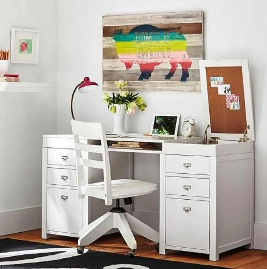 Using a desk to provide comfort when studying so that concentration in learning increases.