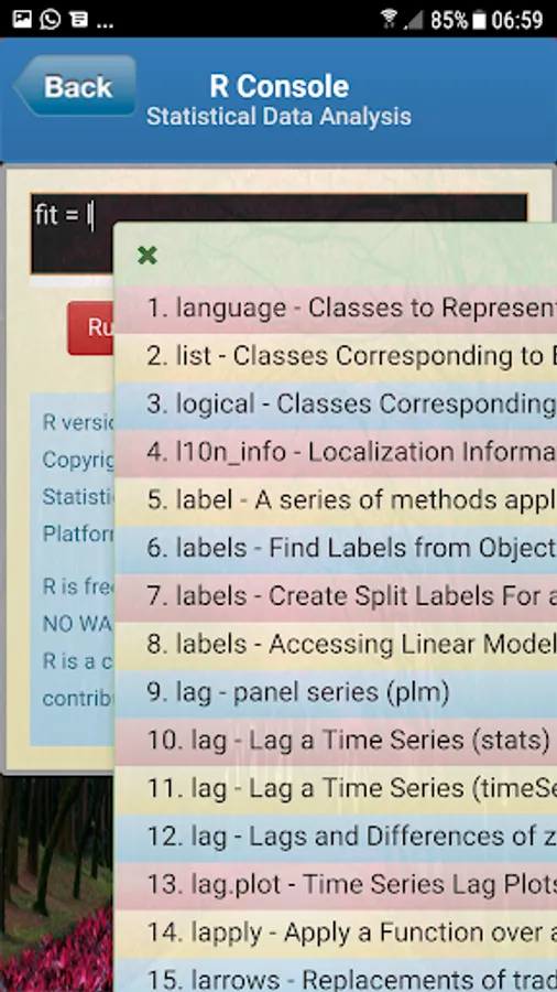 Run R Script is an online integrated development environment (IDE) for R statistical computing and Python programming language. It includes a console, code editor that supports direct code execution as well as tools such as user-defined data file, cloud-based code storage, offline incremental search for more than 3600 functions, R search powered by Google custom search and code completion.