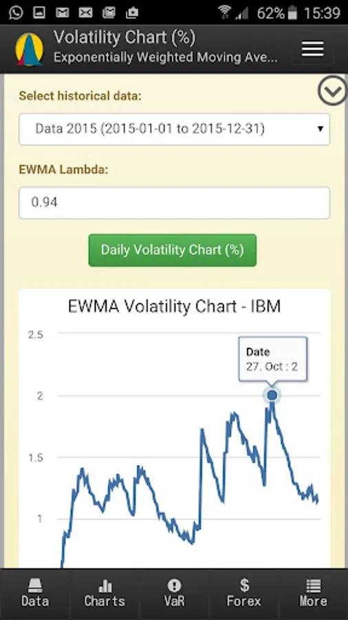 - View price chart, return chart and volatility chart using Exponentially Weighted Moving Average (EWMA)