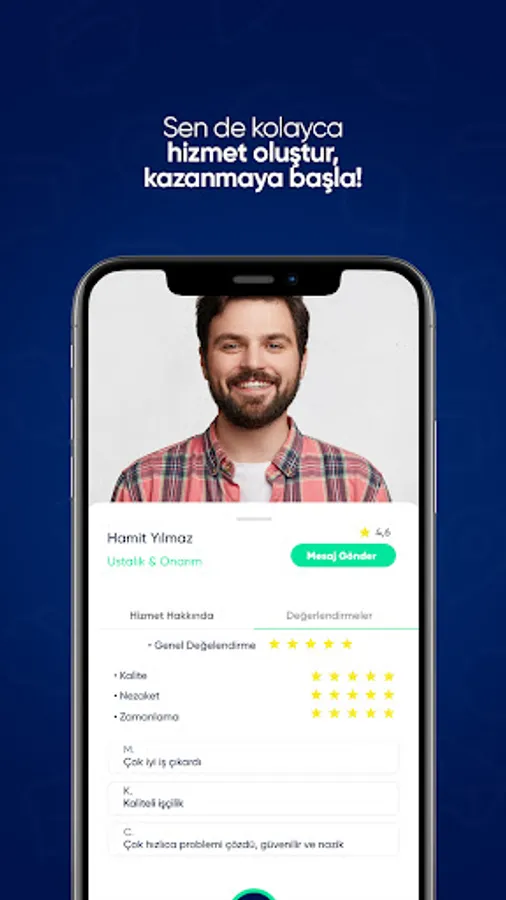 VARMI is a service discovery engine. When you enter the application, you can easily find many services that will make your life easier. Moreover, those who provide these services are very close to you. Maybe even as a neighbor... You can examine the profiles of the service providers you are looking for(we call these people VARBEN), and you can contact them by sending a message. With VARMI, you can fill your stomach, get your house cleaned, have your iron done, repair the faults, have your car washed, entrust your dog, and easily access many other services that will make your daily life easier. We know that you can definitely earn a profit with a service. That's why it's free and very easy to create a service posting(being VARBE) on VARMI.