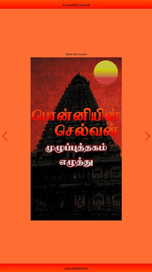 Ponniyin Selvan (The Beloved of Ponni) is aTamil historical novel written by Kalki Krishnamurthy. This narrates the story of Raja Raja Chola I born Arulmozhi Varman was a renowned king who ruled over the Chola kingdom between 985 and 1014 CE. Vandiyadevan is the main character in this novel. Incidences in this novel centres on a number of real historical characters and incidents.