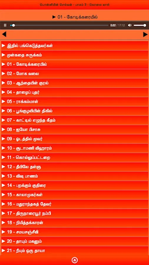 This App consists of Ponniyin Selvan - Volume 3 - Kolai Vaal (Duration : 12 hours 48 minutes) only as Audio book and full Ponniyin Selvan book. Considering the file size and quality each volume are being released as separate app for convenience of the users. Each Volume can be downloaded separately.