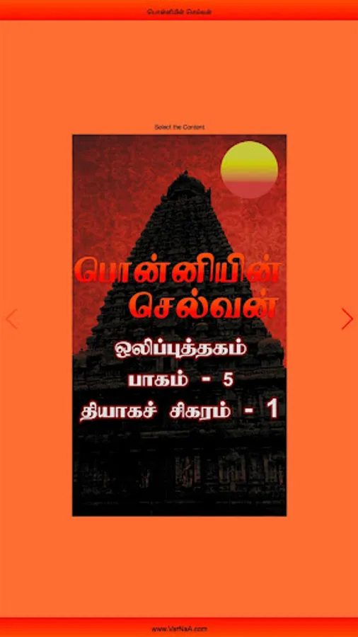This App consists of Ponniyin Selvan - Volume 5 - Tyaga Sigaram - 1 (Duration : 12 hours 53 minutes) only as Audio book and full Ponniyin Selvan book. Considering the file size and quality each volume are being released as separate app for convenience of the users. Each Volume can be downloaded separately.