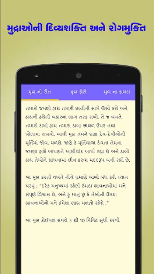 This app introduced all hand mudras with its benifit and how to do it. also provide one image of every hand mudras Posture.