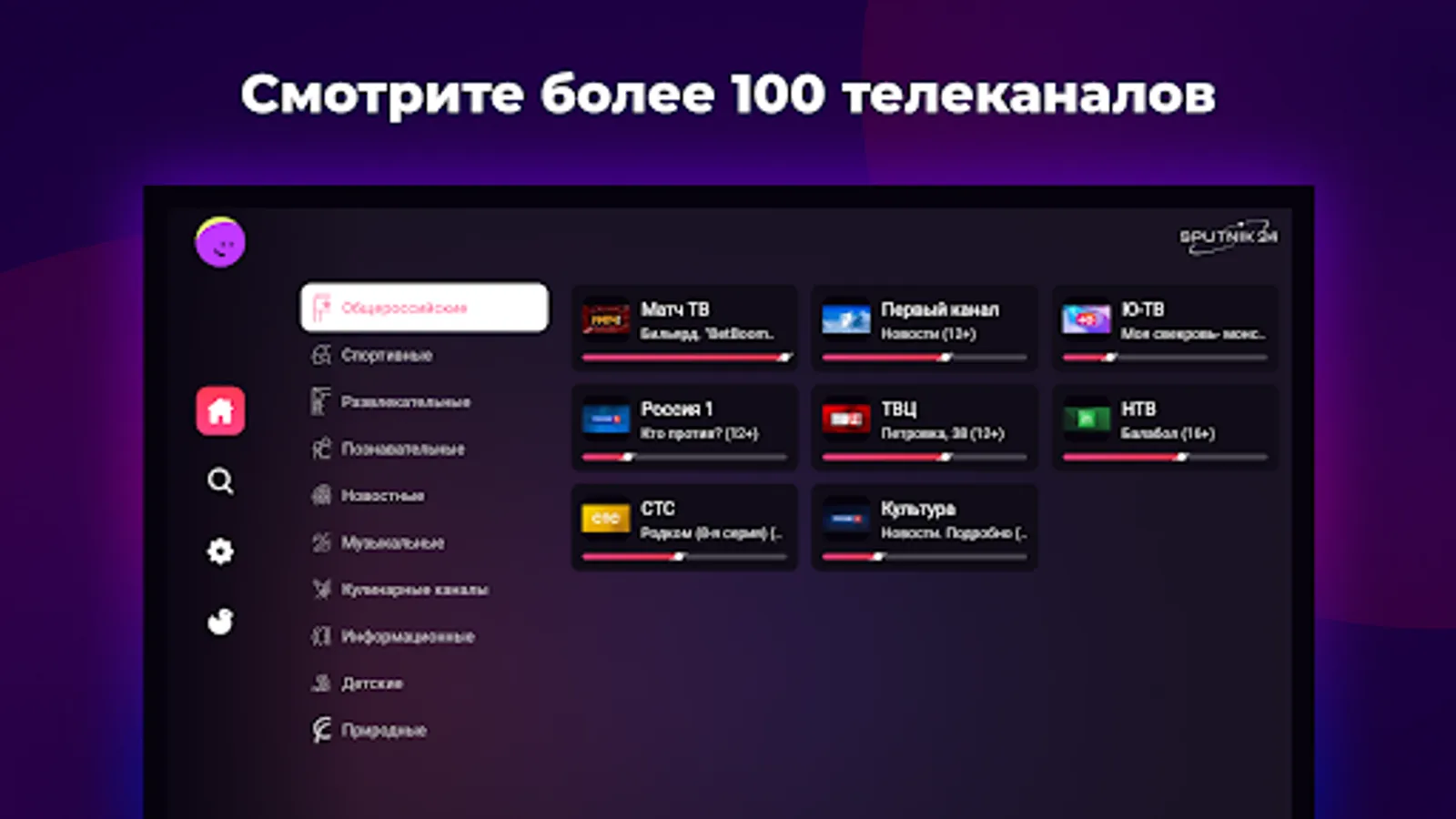 Sputnik 24 is more than one hundred TV channels for free viewing.