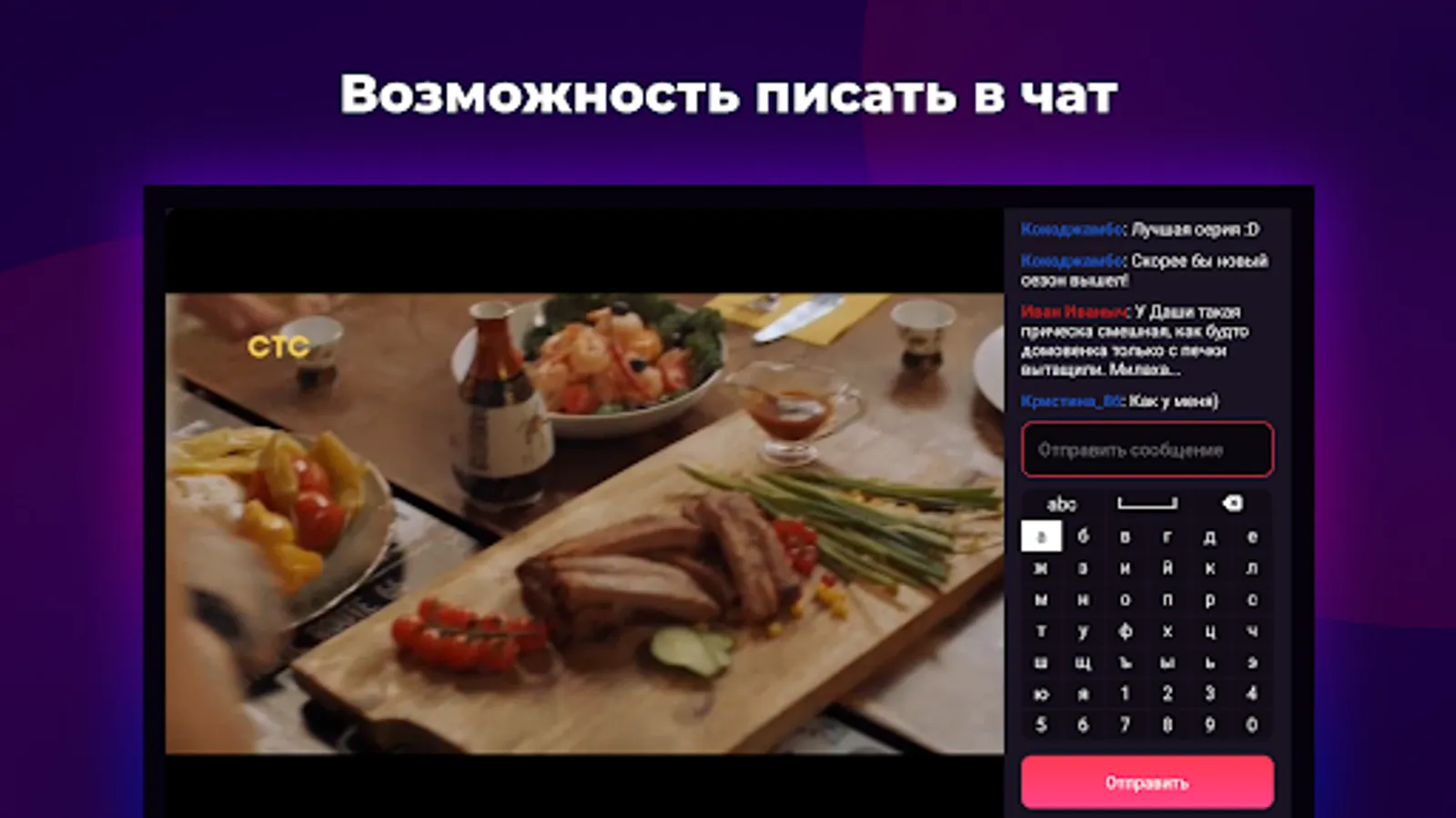 Television is an important part of our life. With us you can watch live broadcasts in high quality, chat and put colorful reactions right on your TV! Choose your favorite video categories and personalize your profile, add channels to your favorites for quick access on any platform - PC, phone, laptop, tablet, TV.