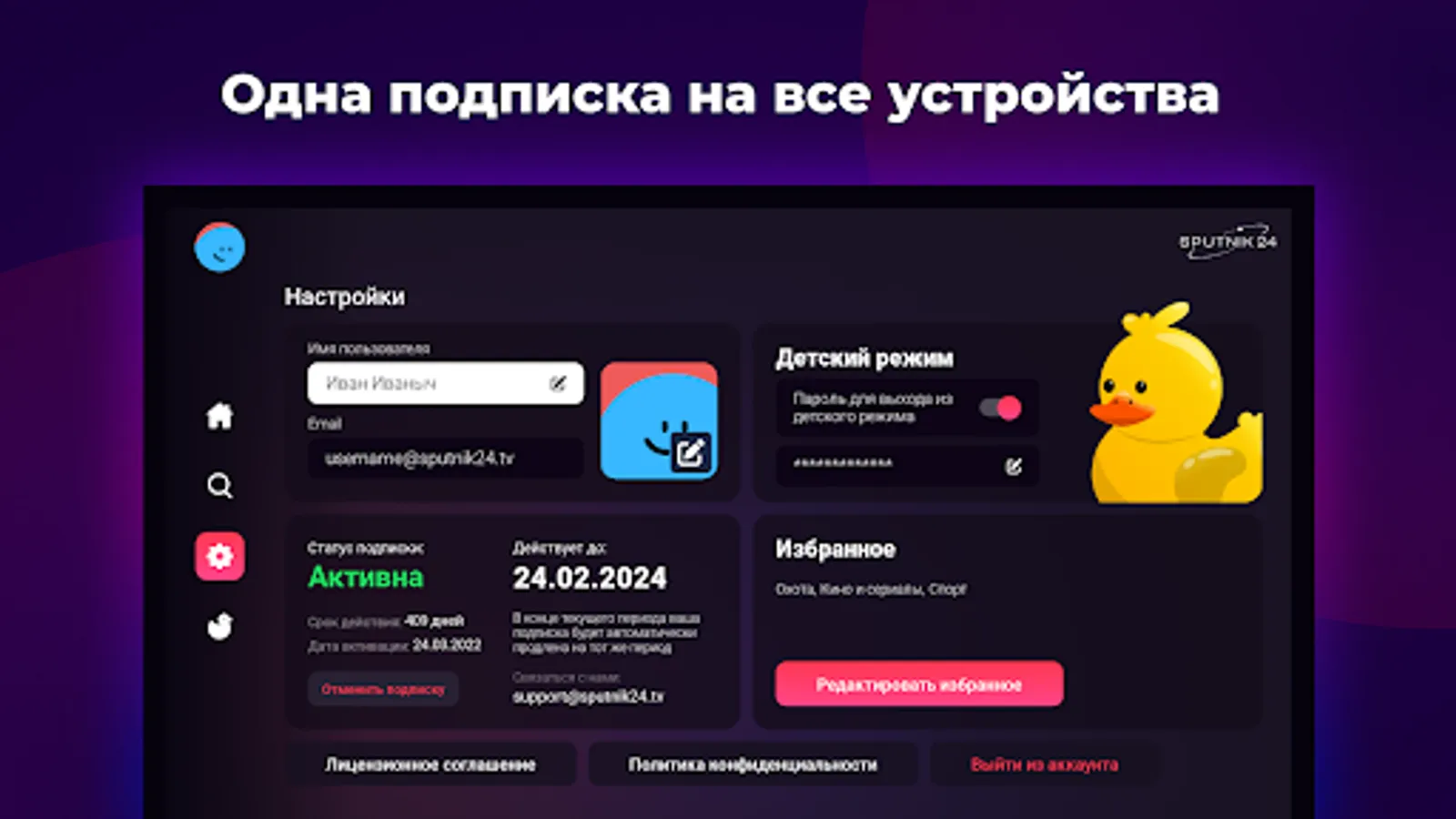Rating programs, favorite TV series, latest news, the best reality shows and everything offered by leading TV companies are convenient to watch in our Sputnik24 application.