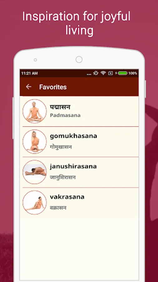 • Create list of favourite yogasana list
