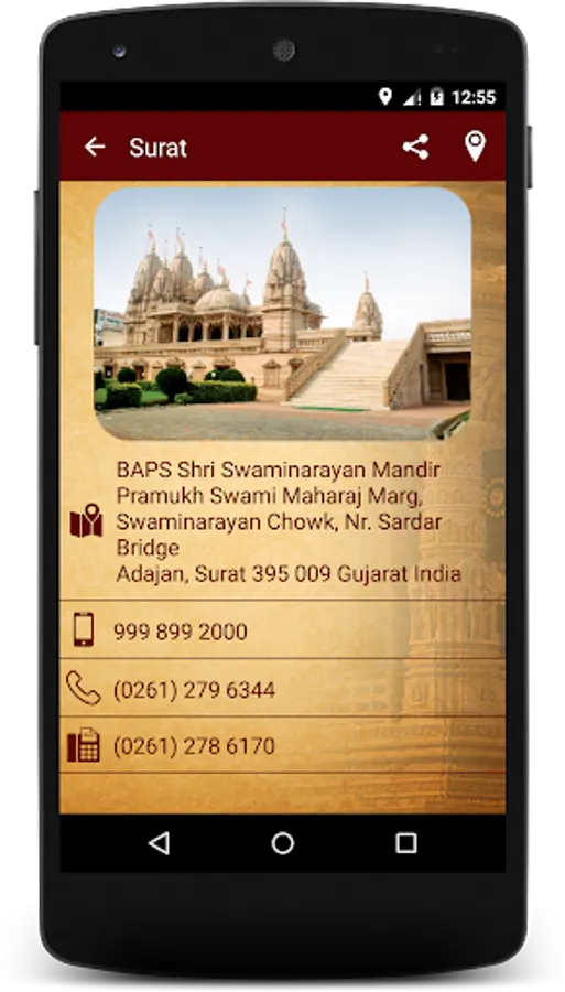 Devotees can also share the application and particular mandir information of any other people by sending information via email, sms, whatsapp etc.
