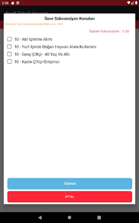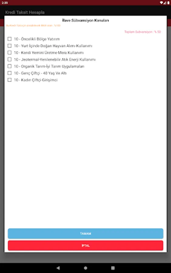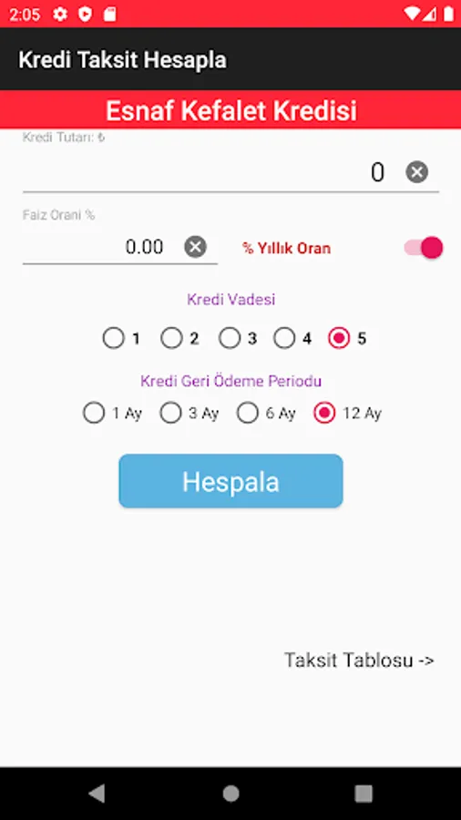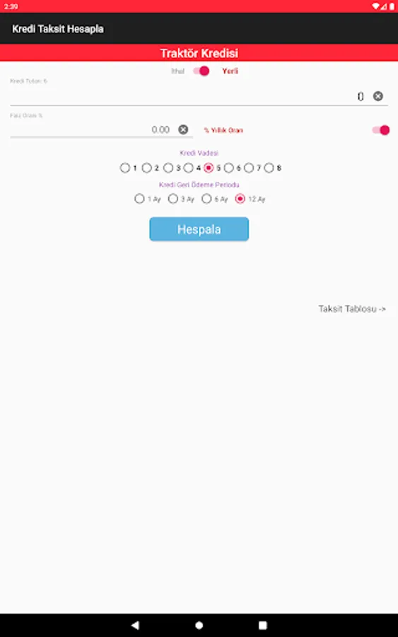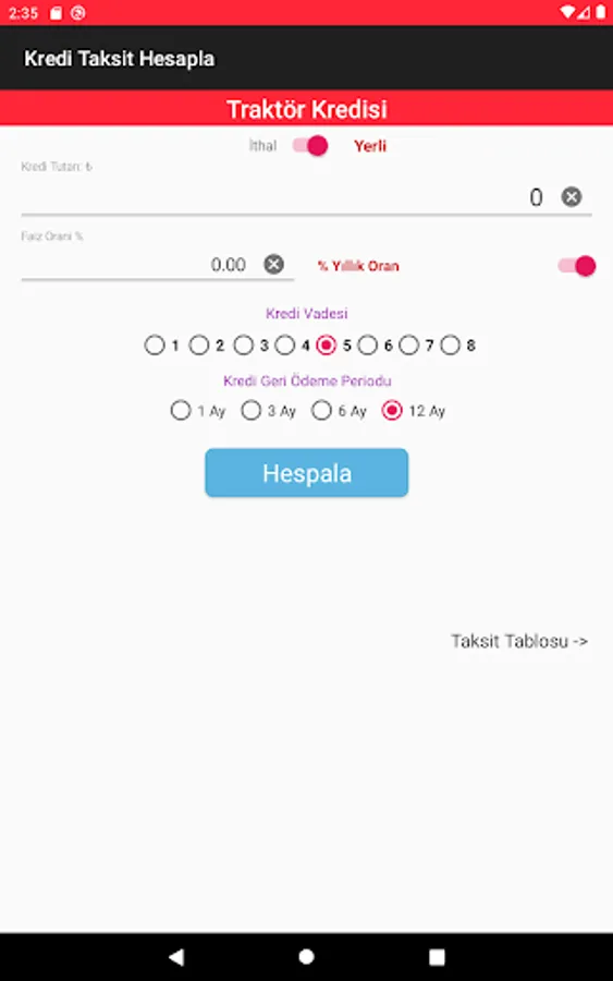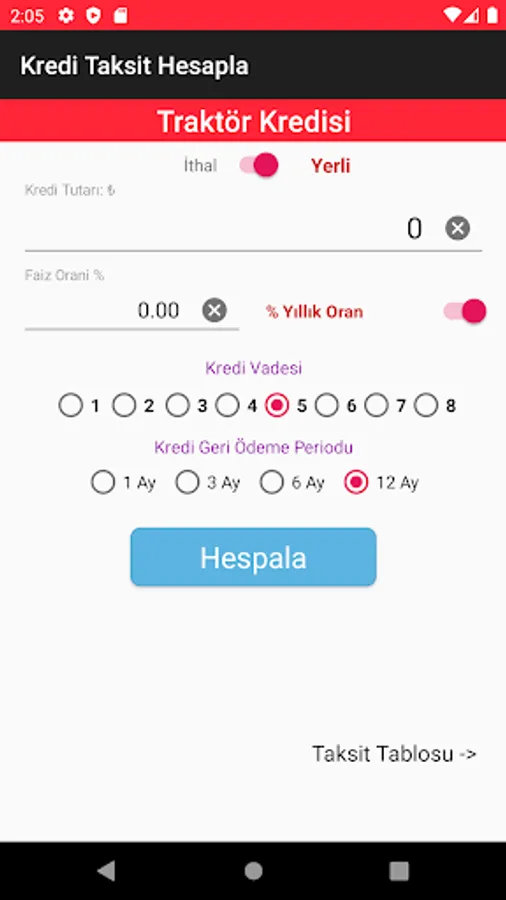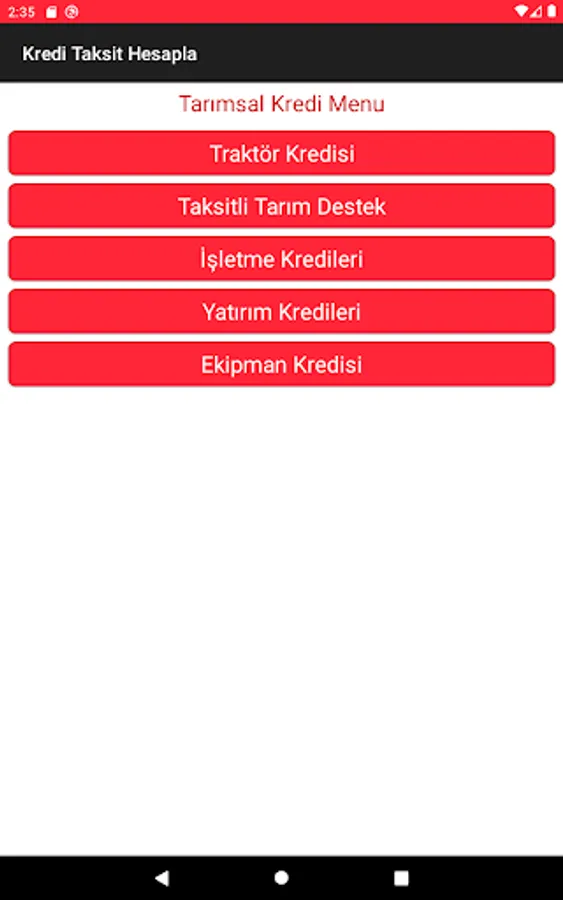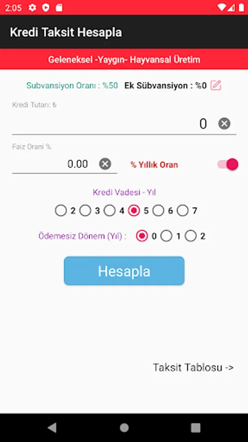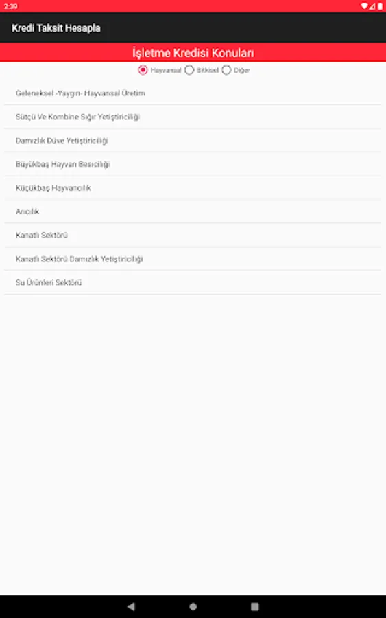 Agricultural (agricultural farmers) Business Credit; Up to 18 months maturity and interest payments of 3, 6, 9 and 12 if collected in the evil-month period and this period is asked to do the calculation in the payment of the principal amount in equal installments.