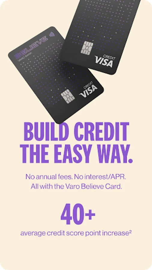 The Varo Visa® Debit & Believe Cards are issued by Varo Bank, N.A. pursuant to license from Visa U.S.A. Inc.